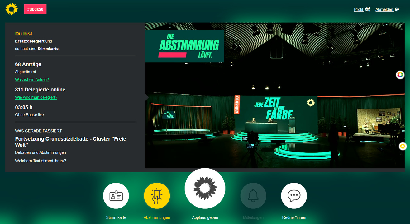 Die 45. Ordentliche Bundesdelegiertenkonferenz von BÜNDNIS 90/DIE GRÜNEN fand vom 20. bis 22. November 2020 digital statt. Damit waren wir die erste Partei, die es geschafft hat, einen kompletten Bundesparteitag digital abzuhalten. Ich war als Ersatzdelegierter die ganze Zeit dabei.