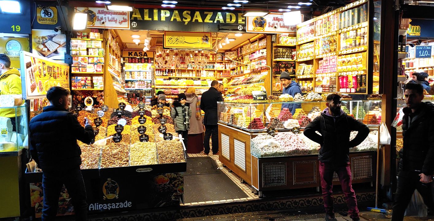 İstiklal Caddesi, as the big shopping street in Taksim is called, is busy around the clock. But the side streets are also full of life. A small teahouse beckons to me and so I decide to take a seat there. The waiter, a man in his fifties, greets me in a friendly manner and brings me a cup of Turkish tea and a few pieces of the famous Turkish desserts. Sweet as sugar, but still tasty. A variety of nuts and fruits create a world of exciting textures and diverse flavours. You can't eat much of the Turkish desserts and yet the desire for more, for something new, hardly diminishes. The traders in their small shops attractively display their assortment. I continue my journey of discovery. Roasted seeds and nuts, traditionally served with tea or coffee, but also Lokum, a sweet based on a mixture of jellied starch and sugar, often mixed with nuts or fruit flavours, is offered for sale in thousands of varieties. Want to try it? No problem! Often there are small bowls with smaller pieces that can be tasted.